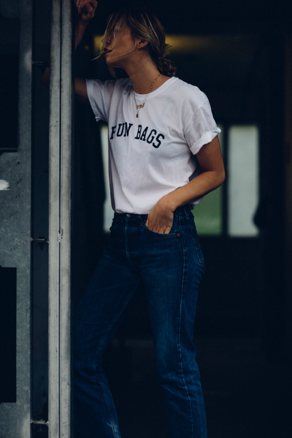 I’m proud of mine, it says ‘Fun Bags’. And my boobs are so tiny, the term ‘Fun Bags’ is actually hilarious. Not as small as Lauren’s though. We always ask; HOW has this happened to the girl with no tits!?