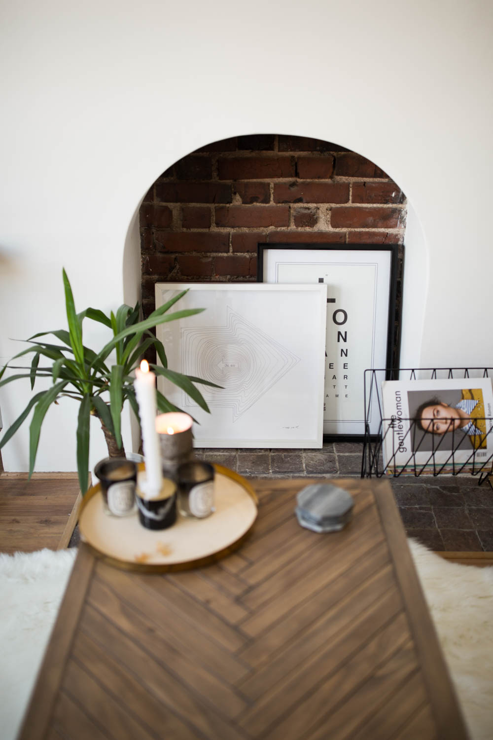 Parquet wood is something I’ve grown to become slightly obsessed with, so when I found this table online, it hit my basket before I could even measure up. I’ve styled it over a very soft, fluffy faux sheepskin rug to add some contrast to all the wood in the flat.