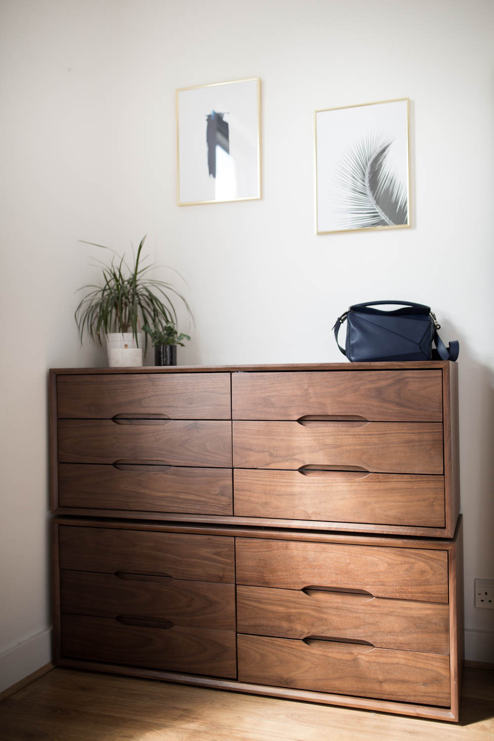 My bedroom needed some TLC in the way of chic storage, so I found these slim, low chest of drawers is a darker wood to stack on top of each other. They’re super spacious and I’ve even got an empty drawer….which to be honest, is a world record for me because I hoard, hard!