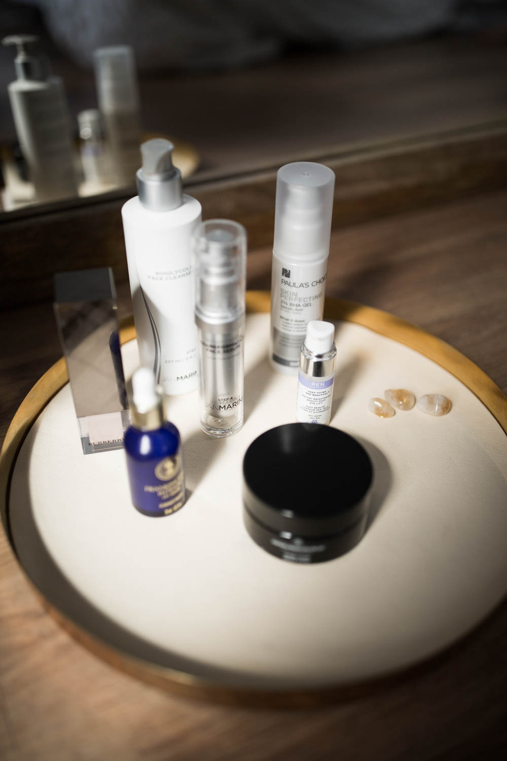 I use eight products, for various reasons, as my skin needs them. I’ve started to understand what my skin wants and when, so I hope this helps you to understand too.
