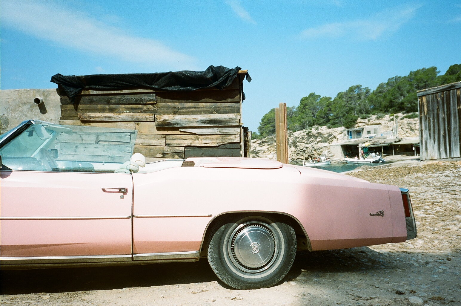 Day 1 for me was a boat trip! I absolutely love boat trips, if only I didn’t get so sea sick. We live and (don’t) learn. The boat took us to some beautiful parts of the island for the day and we were able to hop off, explore and have a beautiful lunch at Sa Calenta. We walked up a considerable hill, in sandals….I might add to see some ruins which was really cool and the view was incredible. On our way down to the boat after our hilly walk, we stumbled across a baby pink Cadillac, and it was beyond cool! Obviously, we all stopped a while to take photos. As we walked through to our boat, we had to go via some old boat houses. There was an elderly gentleman sat by his boat, and he looked calm, happy and took absolutely no notice of us. I took a photo of him as we left because there was something so wonderful about him being there, if you get that. He also had a cat who was hiding in some crates, and he was very cute, and I’ve never really been a cat person.