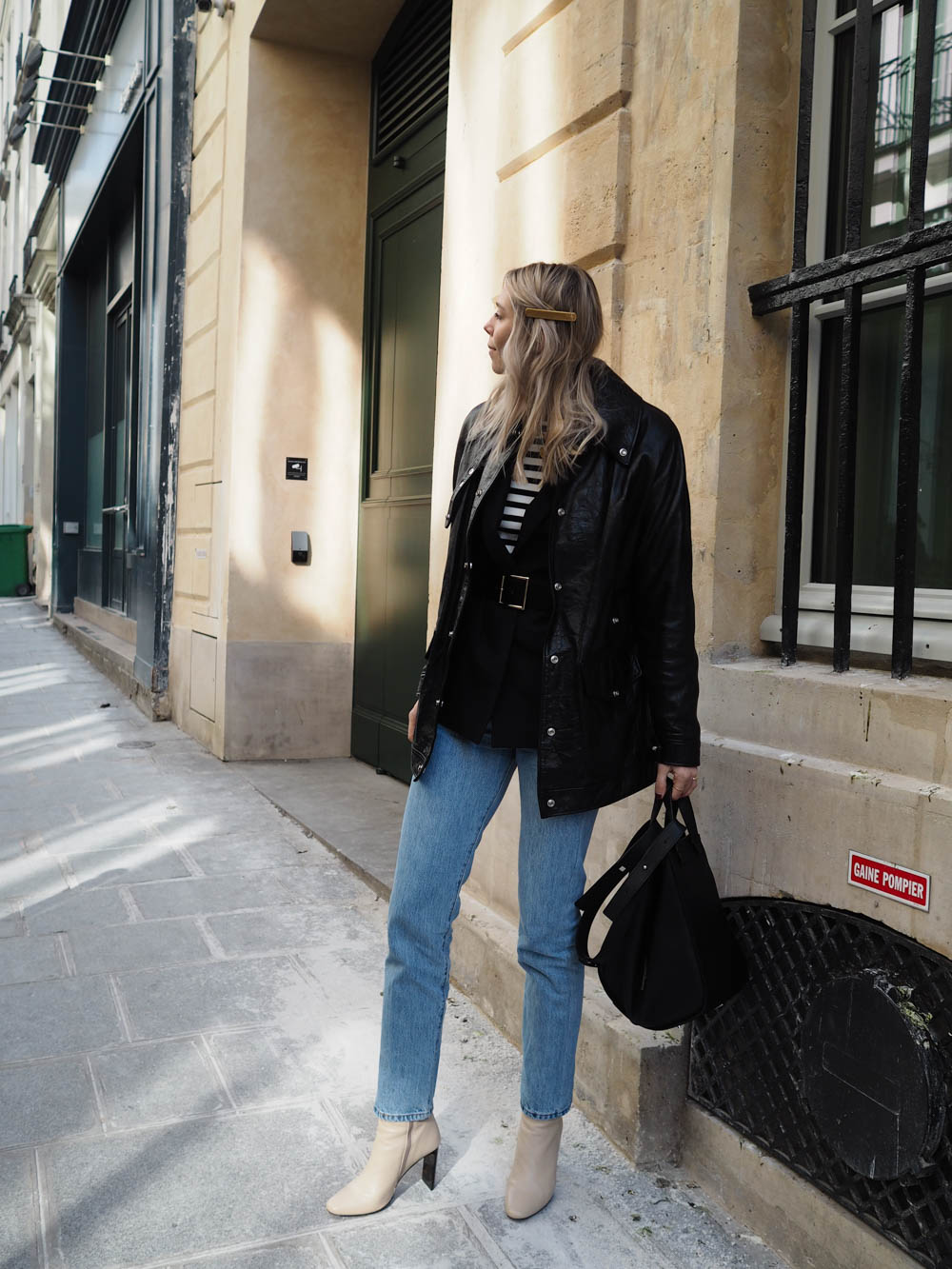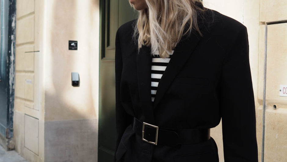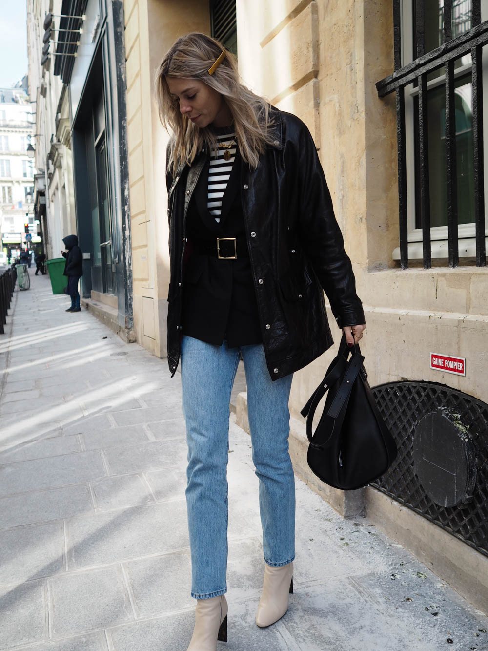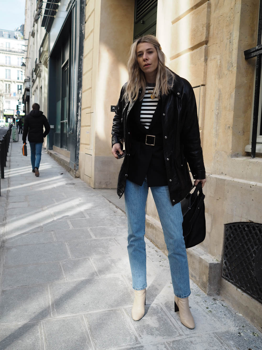 Lacoste have some incredible pieces, really well designed and beautiful quality, with a nod to tennis style past and present. The fashion show collection is always so strong too. I chose this chunky Breton striped knit, to keep it simple but, well, warm. It’s the softest thing and I’ve had it on twice since returning home. To make it feel a little more smart, I popped a boxy blazer and a belt over the top with some light denim 501’s and off-white Topshop boots.