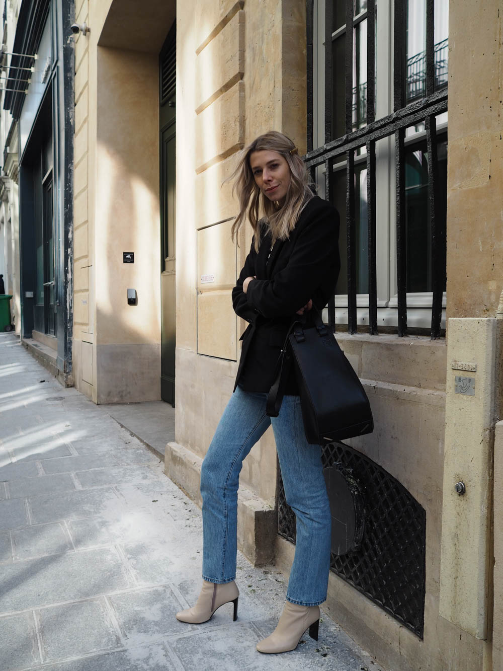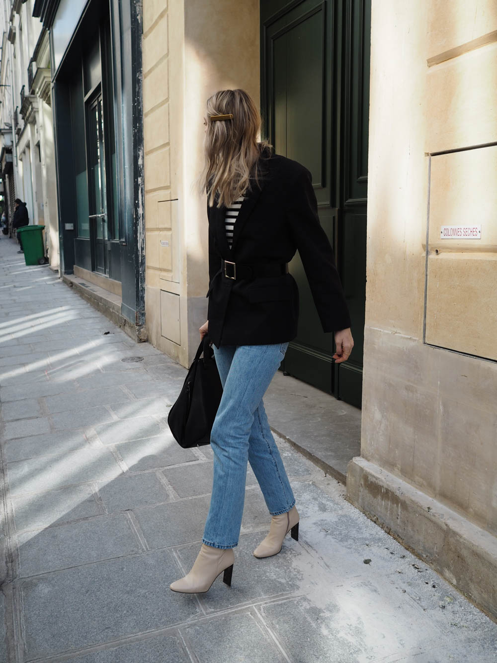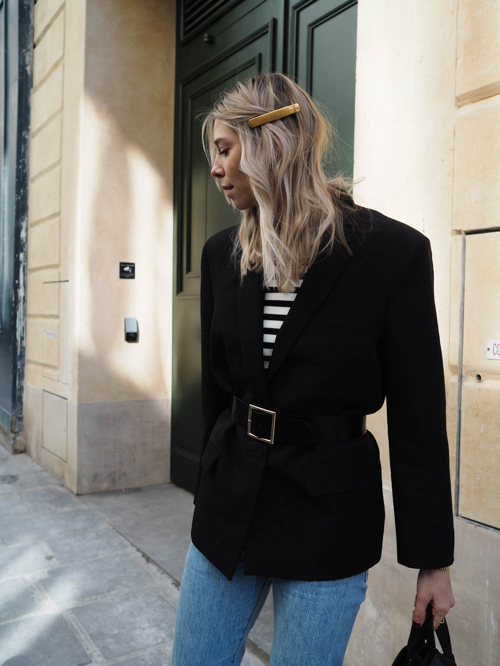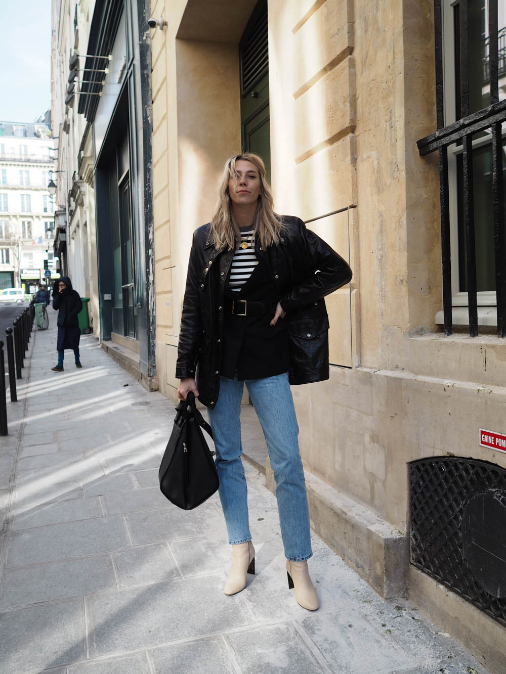 Lacoste have some incredible pieces, really well designed and beautiful quality, with a nod to tennis style past and present. The fashion show collection is always so strong too. I chose this chunky Breton striped knit, to keep it simple but, well, warm. It’s the softest thing and I’ve had it on twice since returning home. To make it feel a little more smart, I popped a boxy blazer and a belt over the top with some light denim 501’s and off-white Topshop boots.