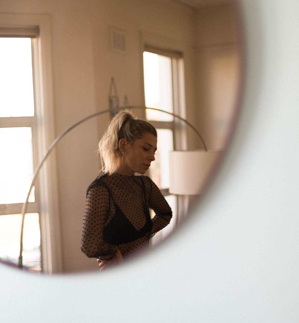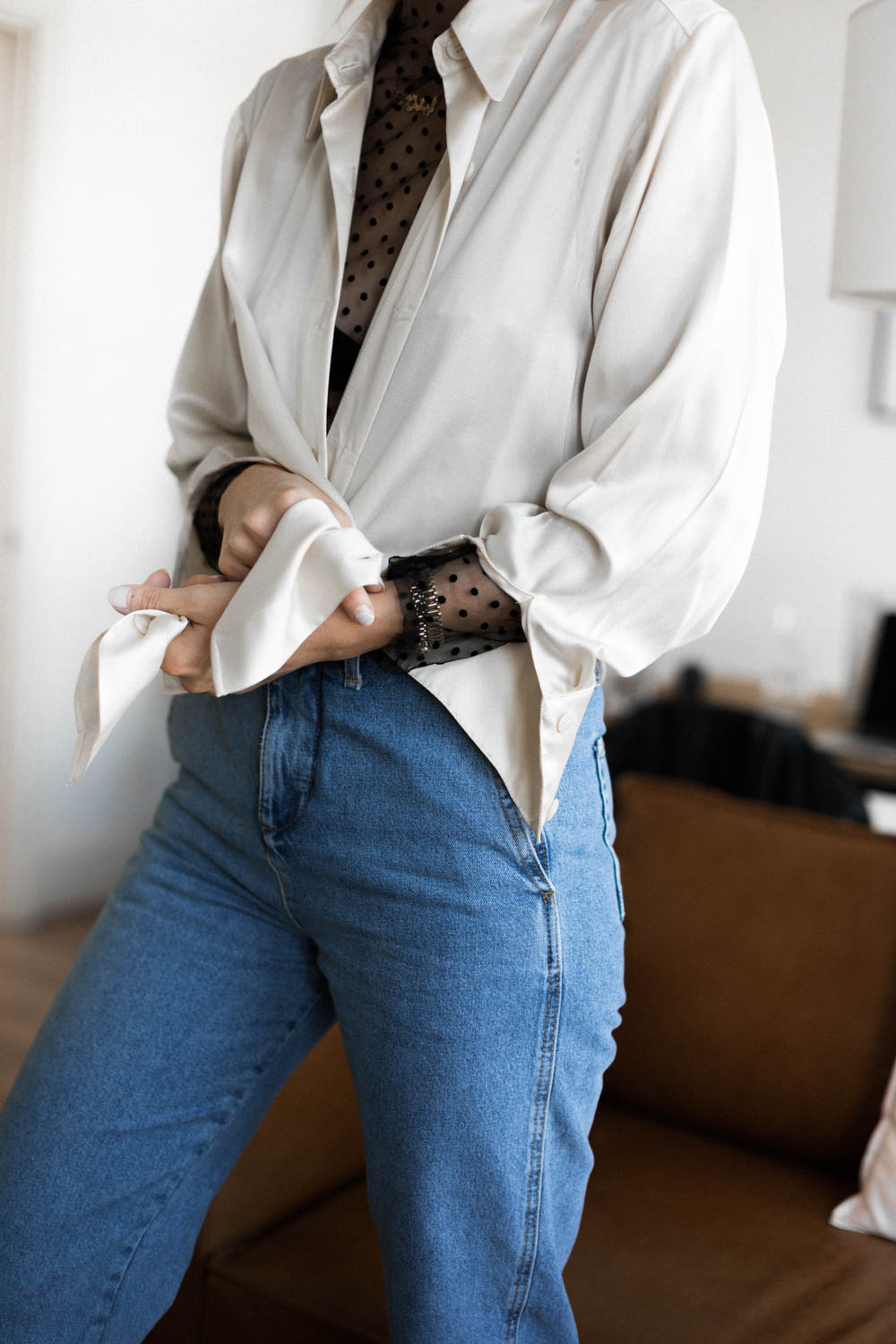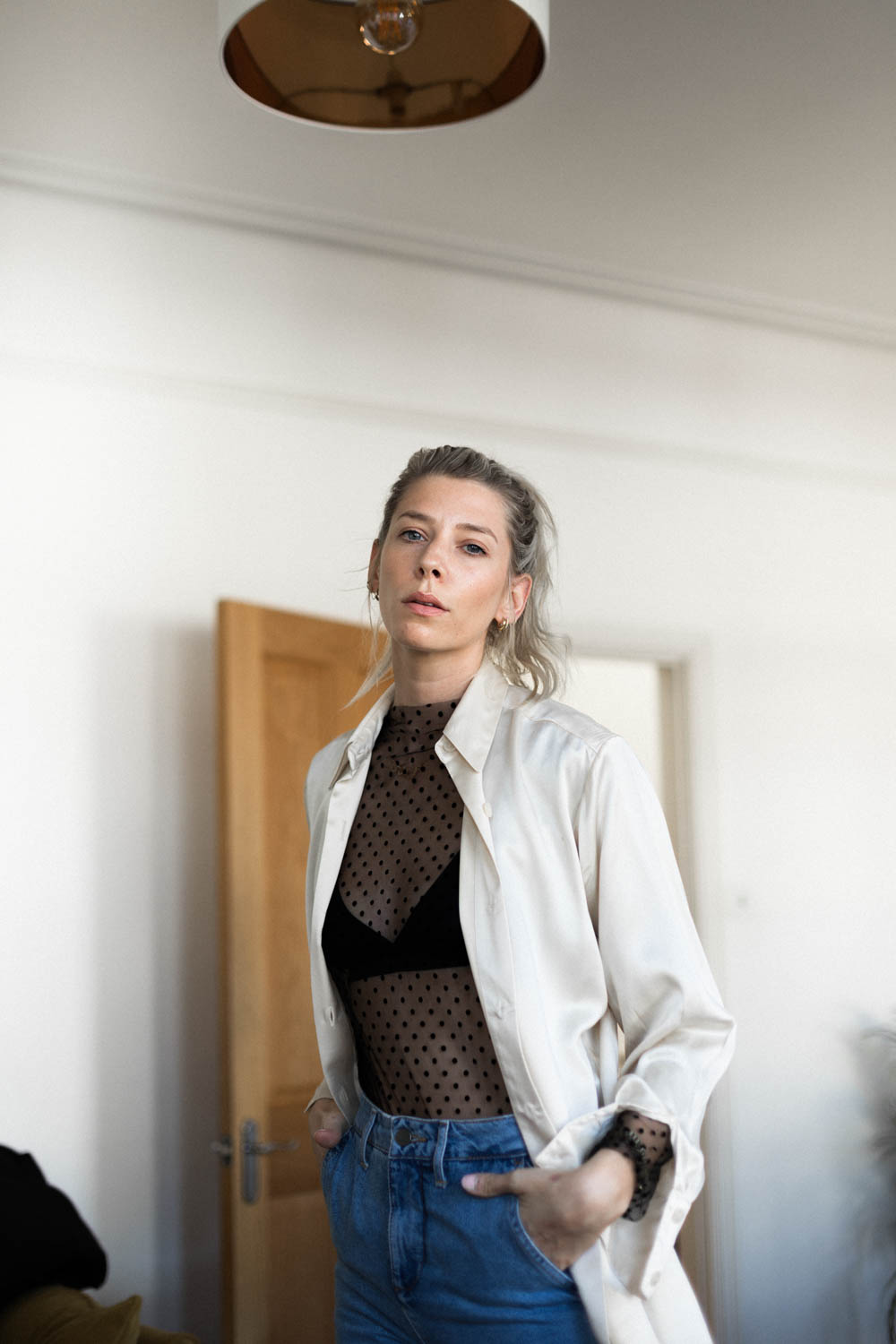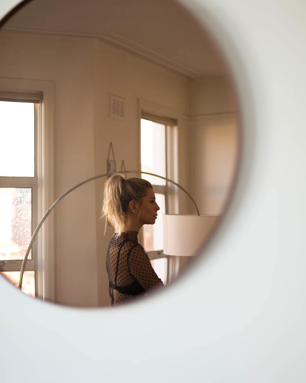 You know me, forever dressed down, and this look is no different. Versatility is key when choosing an outfit that’s going to make your part with your hard earned cash. I’ve had this silk shirt for a couple of months now, and it’s literally worn at least once per week- it comes in light blue too, and that’s next on my hit list. Whether you’re dressing for work or heading out with friends at the weekend, this shirt has got you covered. I’ve used it as a layer for this look to bring a little bit of a relaxed feel to it. Underneath I’ve got this incredible sheer polka dot layer from the Boutique range, which as you already know, has my heart! Whether you’ve got boobs or not, I think this can work as long as you’re wearing the right bra underneath. I can only vouch for smaller boobs at this point, for obvious reasons, but I always go for a soft triangle bra either with or without lace.
