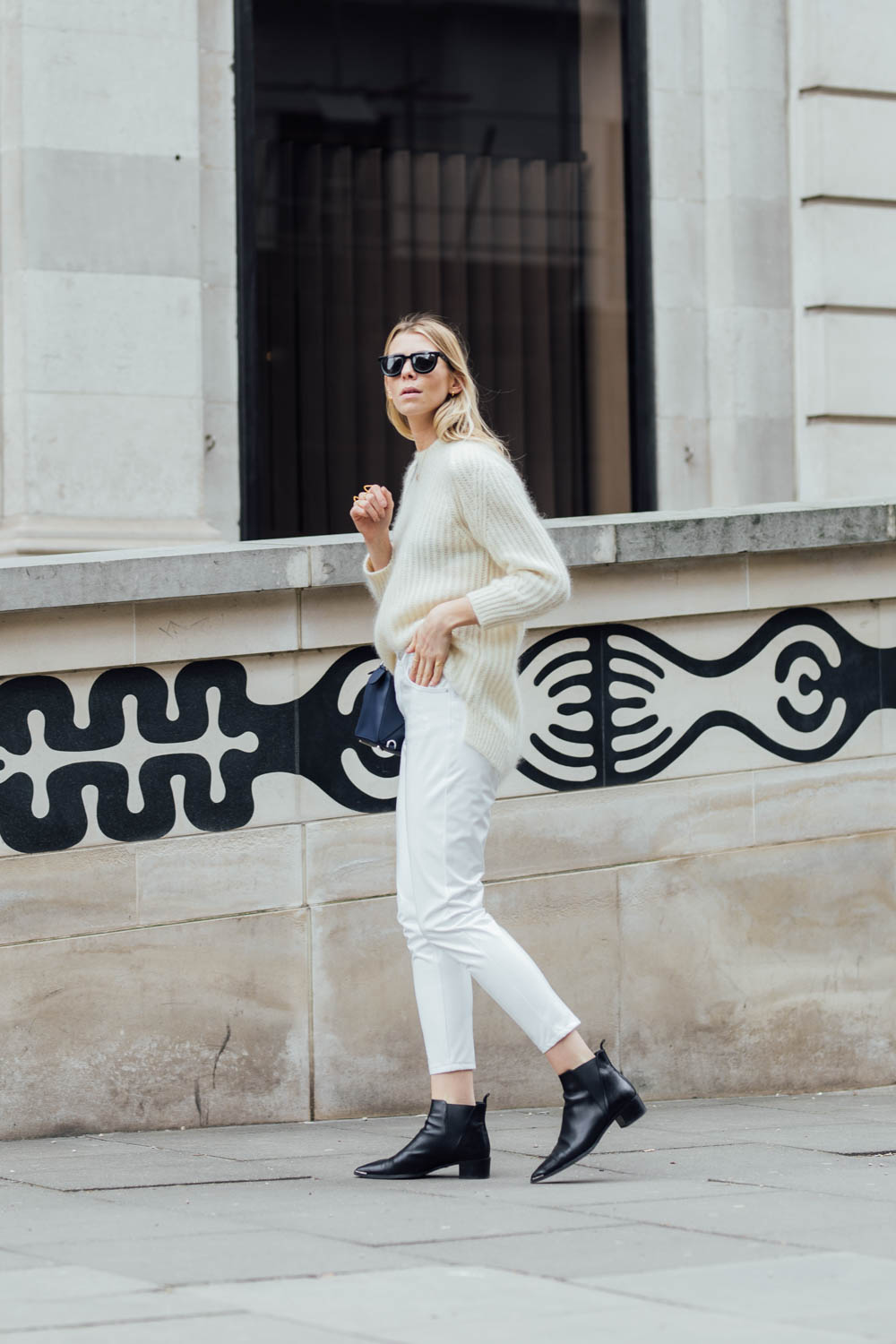 I kept the look very minimal so I didn’t feel too outrageously fash-un. I borrowed (and have not yet returned) this cream knit from a friend to keep the look toned down. It’s by All Saints and it’s one of the best knits I’ve ever come across, both in quality and style. My Acne Studios boots were the only viable option here, because I live and breathe them! I’m going to need another pair soon….honestly!