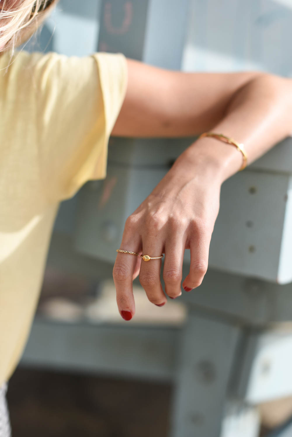 I packed up a few special pieces to take along to LA to wear day in and day out and capture how I wear my Missoma. I love to layer my jewellery and I’m always wearing multi-brand. Its just not reasonable to stick to one brand forever! This gold nugget necklace is one of my favourites for layering up. Its delicate and pretty enough to layer up to three other necklaces before you look like Mr. T! To match my necklace, I chose this gold nugget ring with a little sparkle. This is such an easy piece to wear, and again, great to wear as a layering piece.