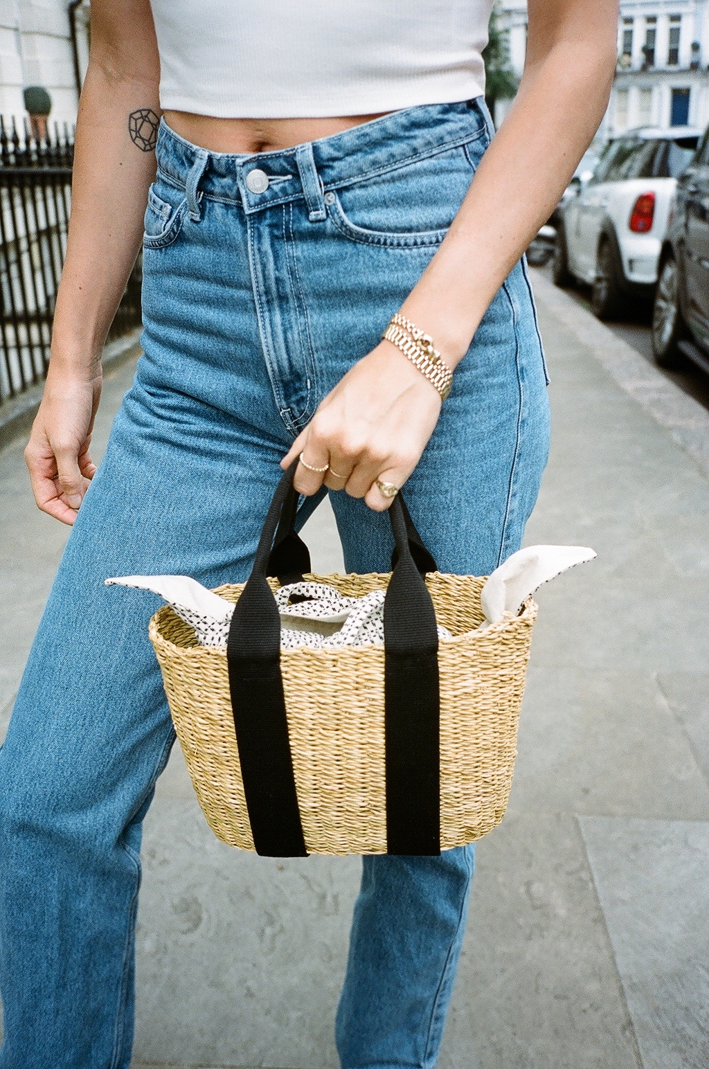 My bag is brand new in too, a treat to myself, lets say. It’s by French brand, Muuñ. It fits a heck of a lot in there, which is perfect for me as I drag around 3-4 cameras a day around with me! It’s the perfect, neutral cool bag for the summer.
