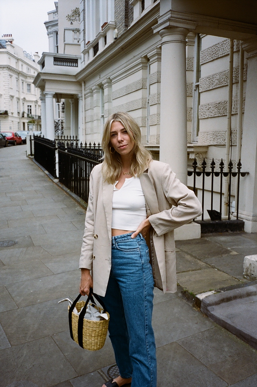 Anyway, believe it or not, pre thunderstorm I shot this look for you out in Notting Hill. I’ve got a couple of new pieces to show you, all fairly basic, and purse friendly. I had the mother of all clear outs last week, and it left me with a very clear idea of what I was missing in my summer wardrobe. I’m lucky enough to be traveling for work a few times this month and then, excitingly, James and I are going to do an Amalfi Coast road trip! We’ve never been before and we’ve both got super pre-holiday buzz.