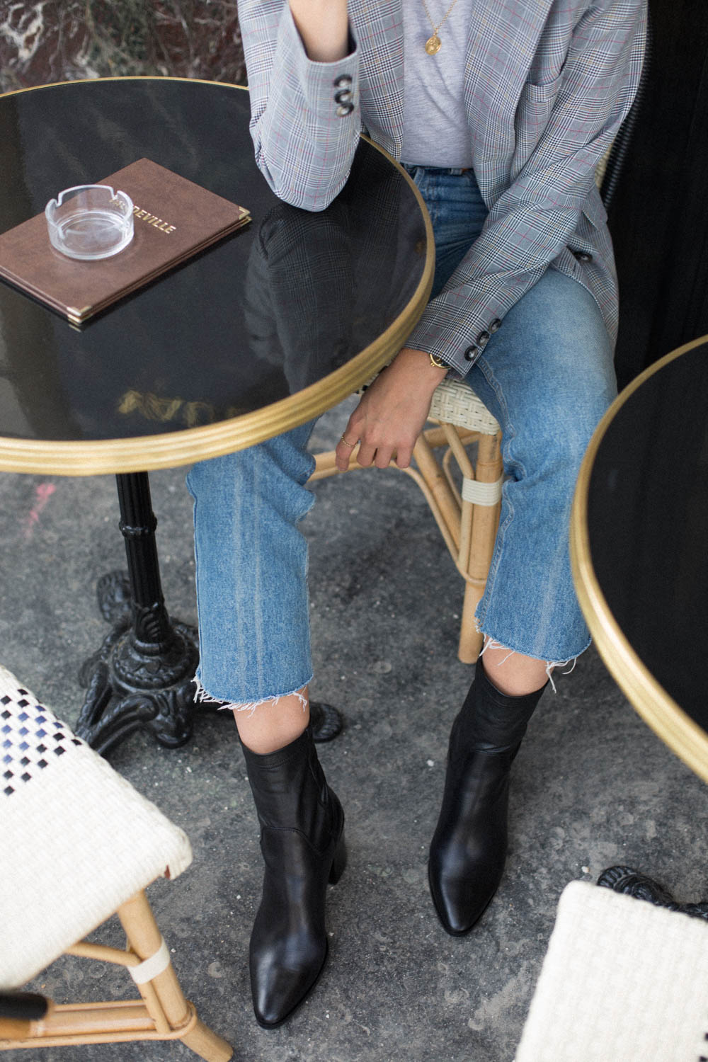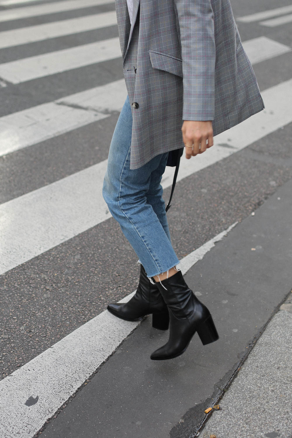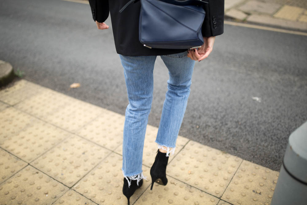 The first pair fit me like a glove. They’re the perfect height, they sit just above my ankle and are really slim so look very chic. I love the chunky block heel on these, which makes them very easy to roam around in and yet they aren’t too high. You know what I’m like for denim so I’ve styled these with my cropped Redone vintage Levi’s and I really love how they smarten up my causal blazer clad look. I’ve had a fair few compliments on them too, so they’re style road-tested! I think this pair would look amazing with almost any Autumn/Winter look, as we get colder, think chunky knits and a longer slim fit pair of jeans.