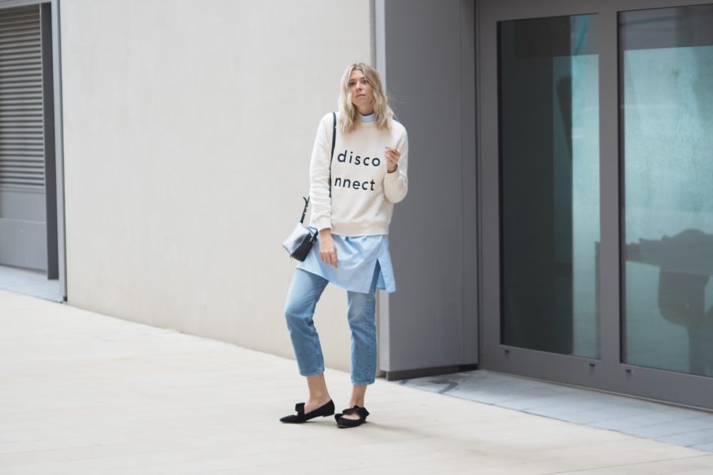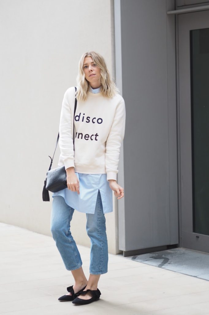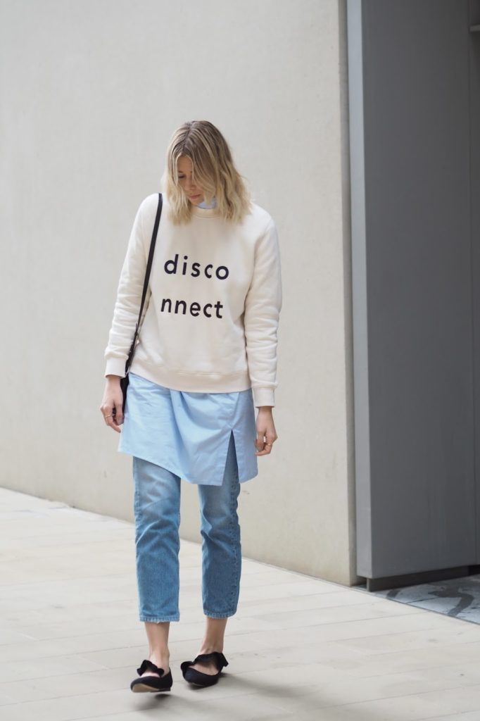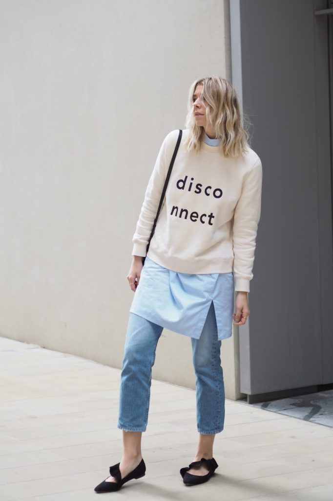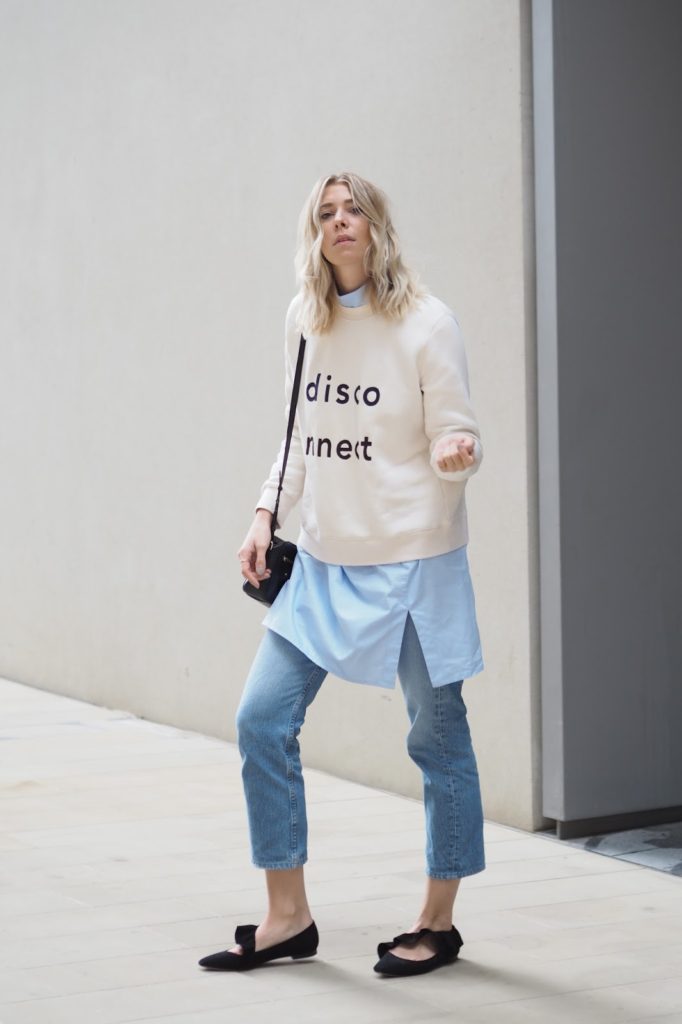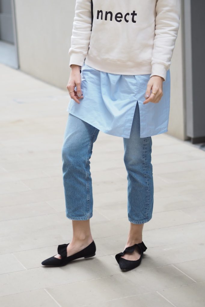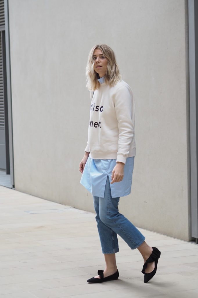 I paired this slogan jumper with my Baum Und Pferdgarten shirt dress, also from Zalando, which is turning out to be the best layering piece for this weather. Light denim, as usual, is my got o here and when I say I’ve got my money’s worth out of them, I mean, I’ve nearly worn a hole in them….The shoes are Zara, and I love a fancy flat. Being tall is amazing, but when I want to add something a little more dressed up to an outfit, I like to have the option to do that in a flat shoe, and not just a heel.