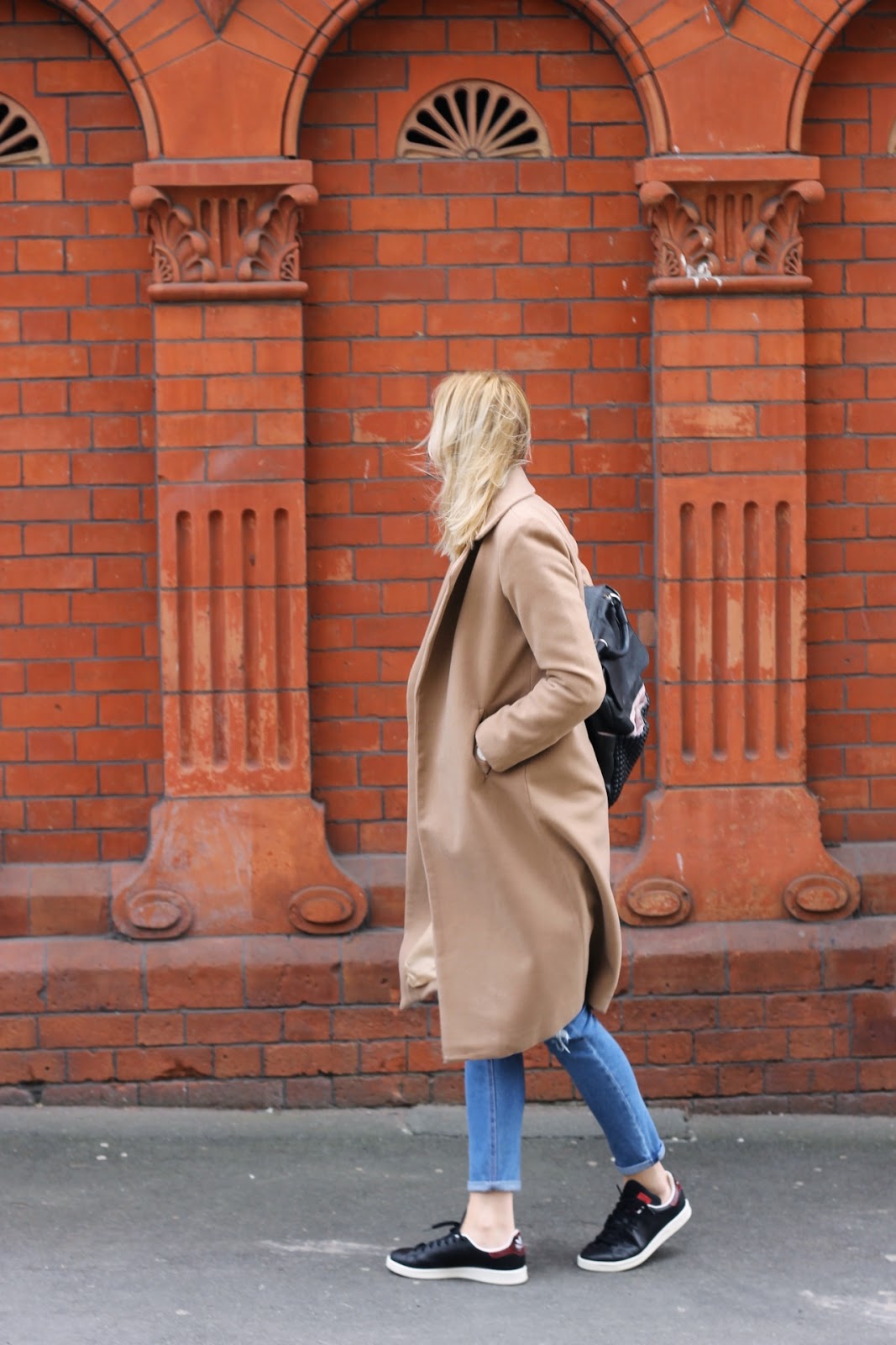 Missguided are topping the coat charts with this incredible camel number and I can’t get enough of it. I headed out into Manchester this weekend with a very good friend who kindly took my pictures for me, her nickname is ‘Beavs’ and she’s the best. Let’s face it, it’s freezing, windy and all around grim outside. I hate dark mornings and I hate dark nights. I basically hate winter. The only thing that takes the edge off it is the new wardrobe I can create! I popped into Zara last week and found my favourite jumper EVER, this little number has a fur trim and is kind of gorilla like, but, I love it. Oh and not forgetting my new absolute fave trainers, black Stan Smiths, it’s actual love and they are the comfiest things ever. This is what happens when your best mate works for Adidas and instills ‘Adi love’ in everything I do!