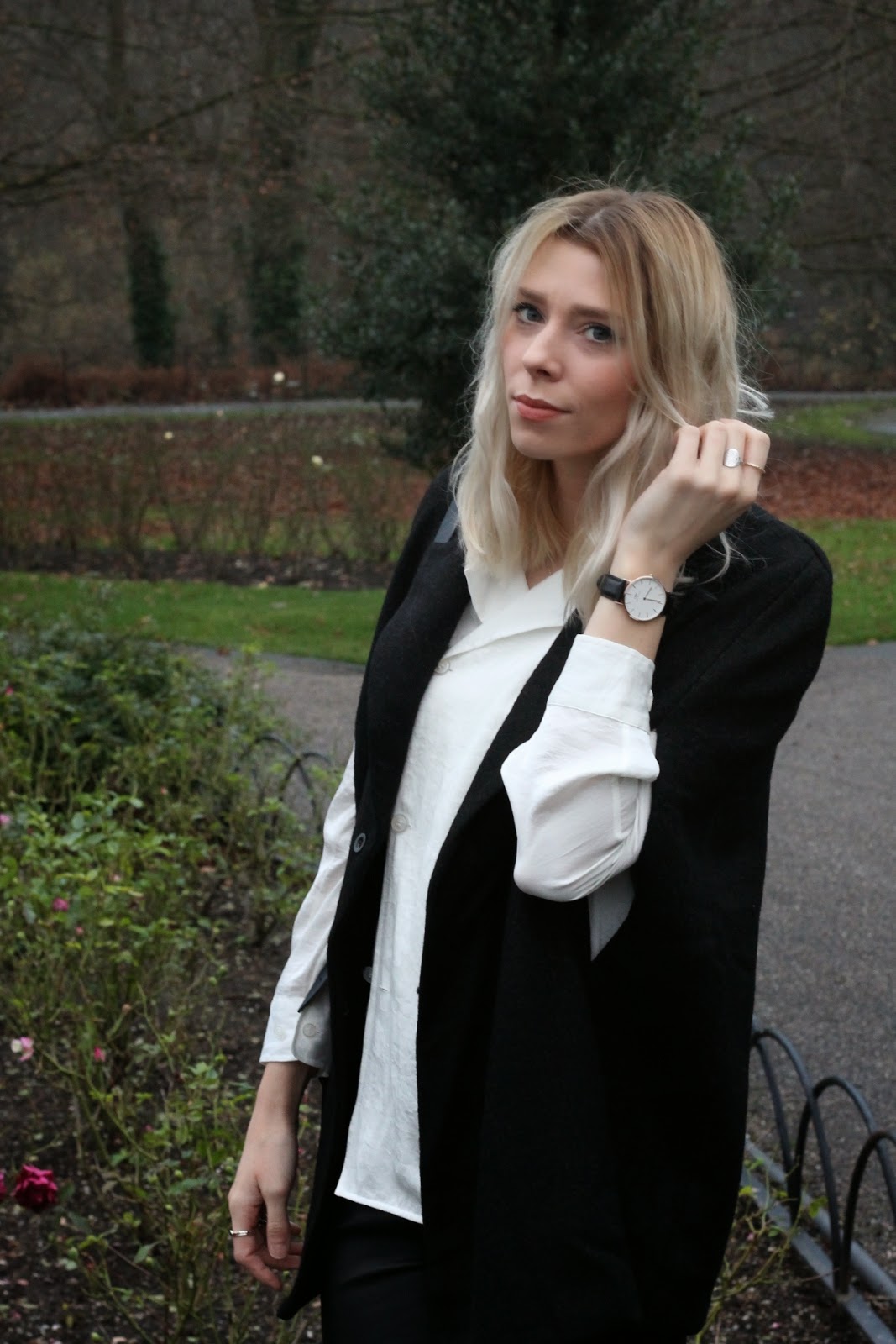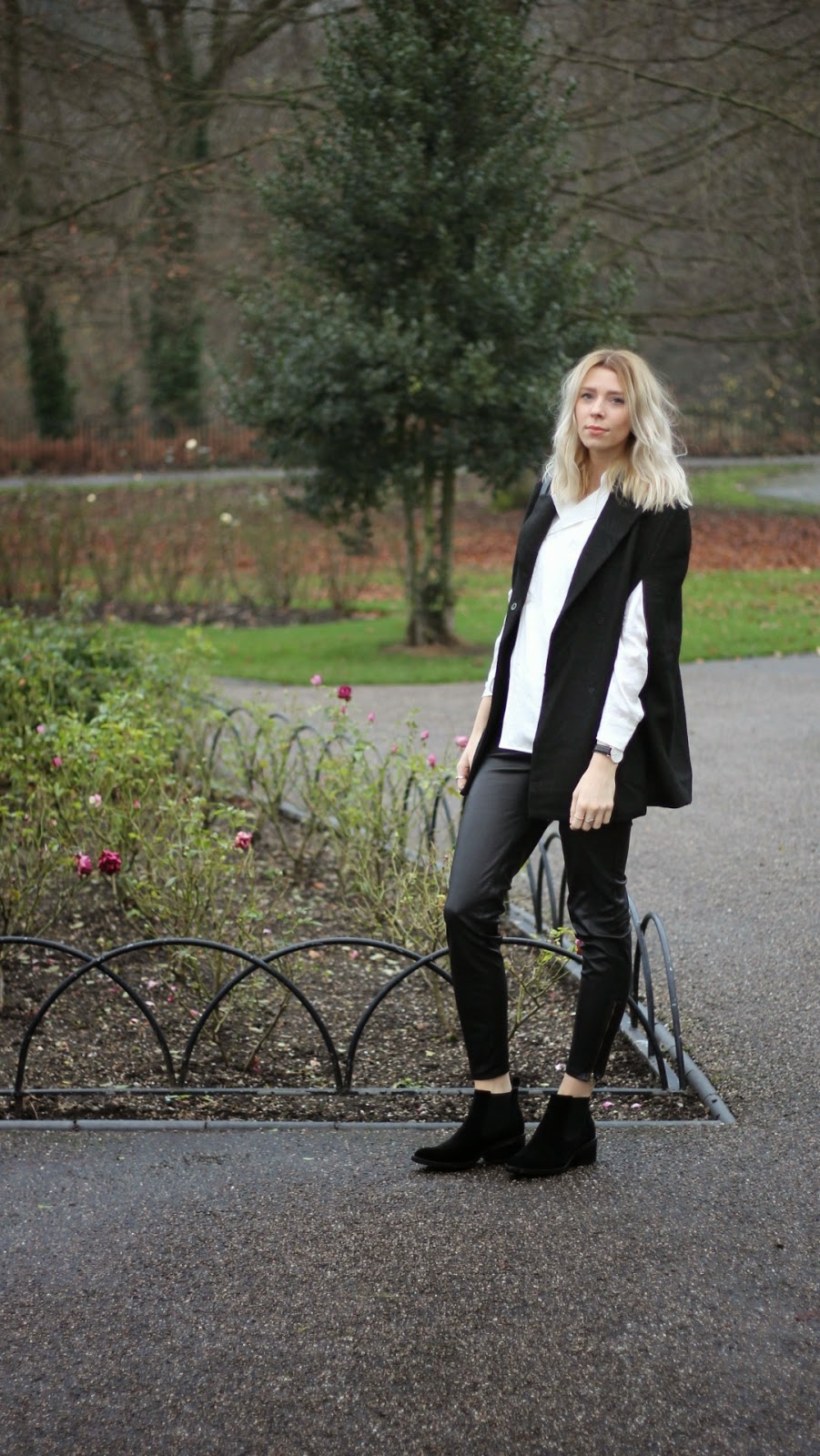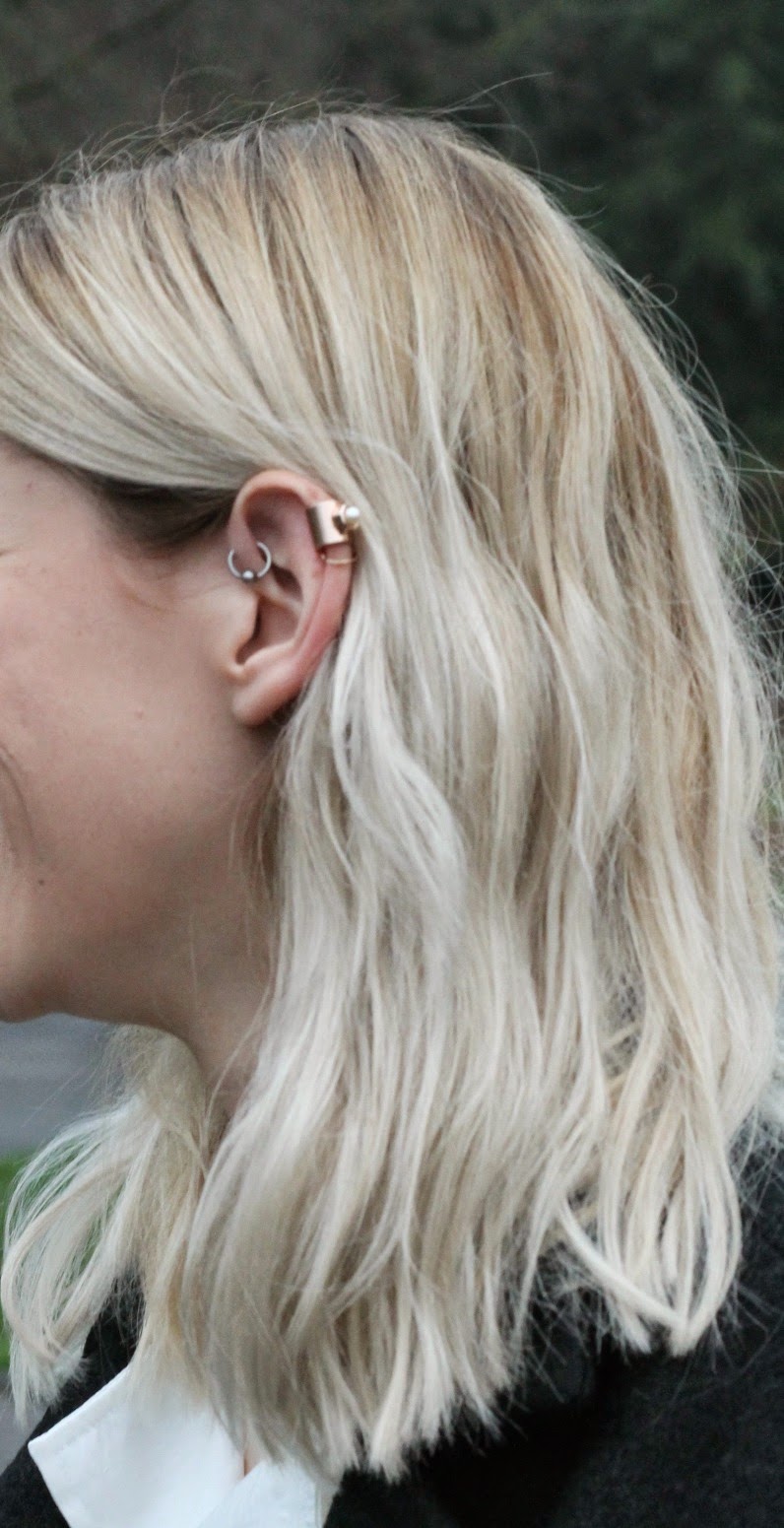 I do love a bit of layering, especially in Winter. So when ARK Clothing sent me out this little caped beauty, I was pretty made up. Beautiful charcoal means its so easy to pair up with a lot you probably already have in your wardrobe. I popped my trusty Zara leather skinny pants on with my silk shirt and new ARK boots from my last post to make this outfit perfect for a cold day. The finishing touches to this outfit were kindly sent to me by two brands I love. The first is The Collective Boutique, an online store that has you covered with all the coolest accessories from some of the best up and coming and established designers across the board. Owned by Hanna who is the loveliest person ever. She sent me out a dreamy Maria Francesca Pepe ear cuff which I adore. I’m such a sucker for ear detailing! The second is My Bag, Clare was kind enough to send me this incredible navy and pony hair Cambridge Satchel Company bag and I am all over it for my trip to New York. It’s coming everywhere with me.