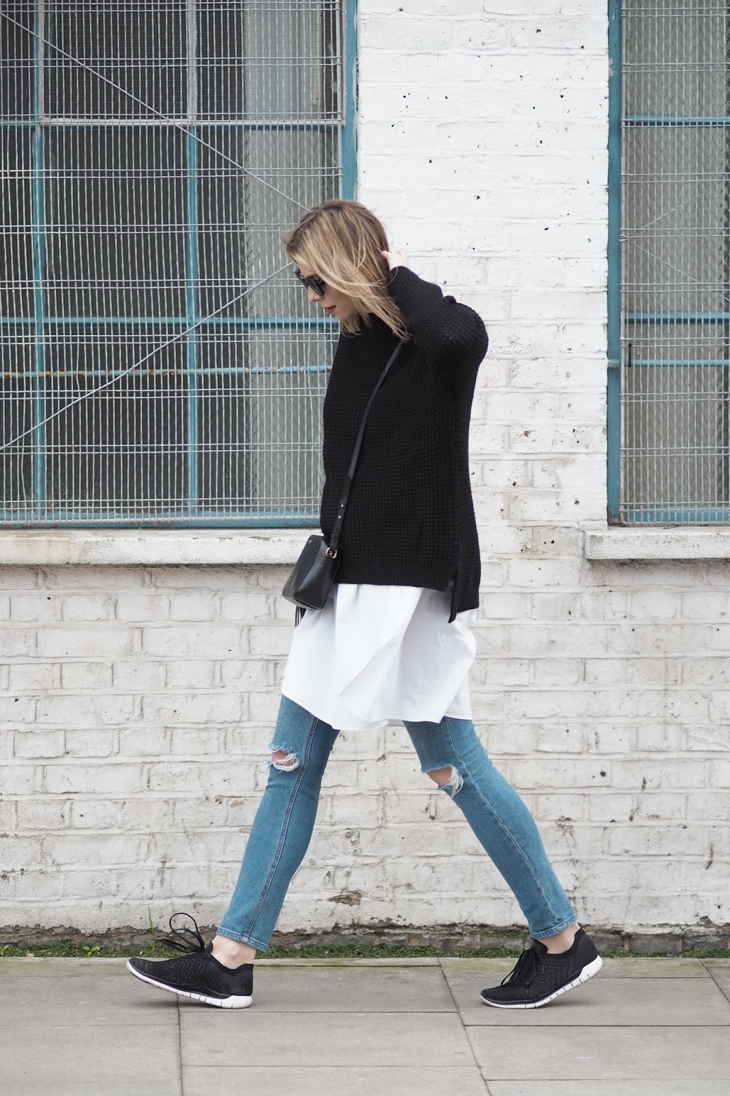 My jeans are ASOS, again, old favourites and by far the best fitting jean I own. The Nike trainers were a gift from my Nike employee boyfriend Chris, I’ve always been an adidas girl, and he’d had enough of falling over my Stan Smith’s every day. They’re Nike Free Run 6.0, ID– which means custom made (apparently. I’m always learning about Nike these days).