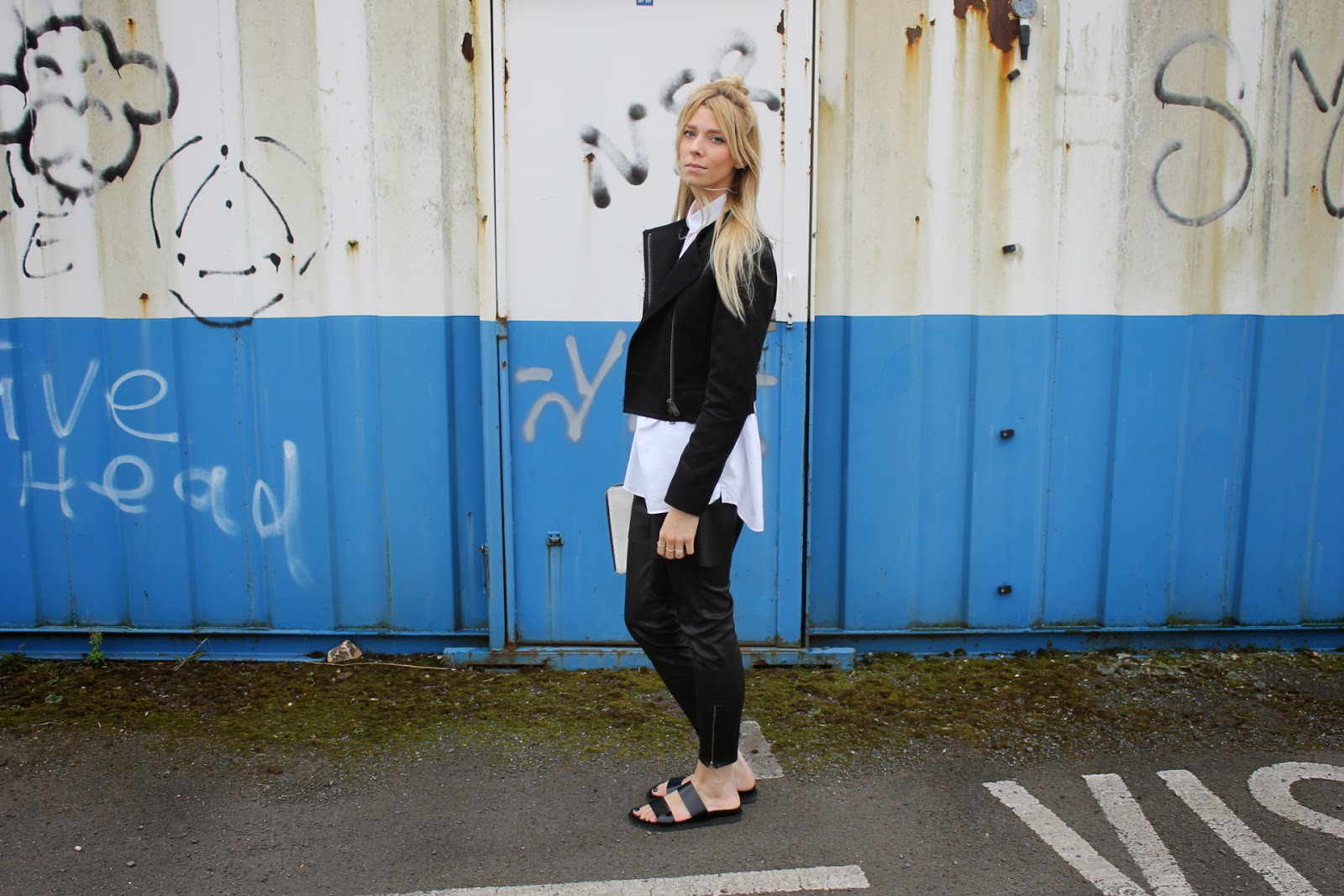Monochrome layering is my favourite past time, I’ll never love a trend more. Fact! Channelling some Chanel catwalk love, I popped my brand new snake print leather Bermuda shorts over my leather pants. I’m wearing my beloved Zara ‘ugly’ shoes, even though I was frozen. And last but by no means least, my Celine jacket. Here it is in all it’s glory, a jacket so beautiful I could cry when I look at it. It’s serious! Oh and I popped up a top knot in my hair and I think I actually quite like it, considering I am the WORLDS WORST at hair.
