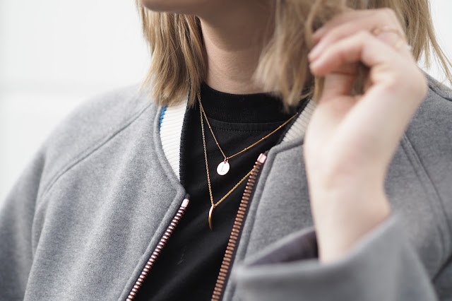 I’m wearing the Gold ‘L’ initial necklace layered with the Lucy Williams x Missoma dagger necklace