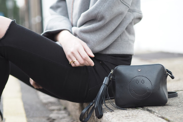 To keep my outfit quite simple, because although the trainers are trainers, the red heart adds a colour statement, I wore all black and my beloved new bomber jacket from Kit and Ace, my new fave luxury basic store.