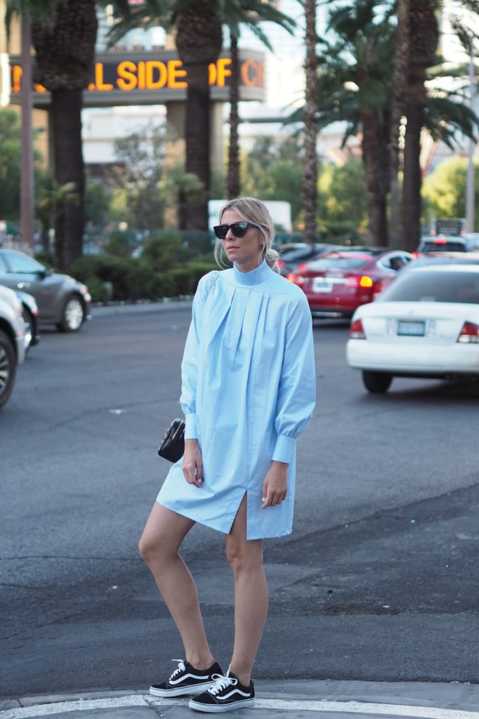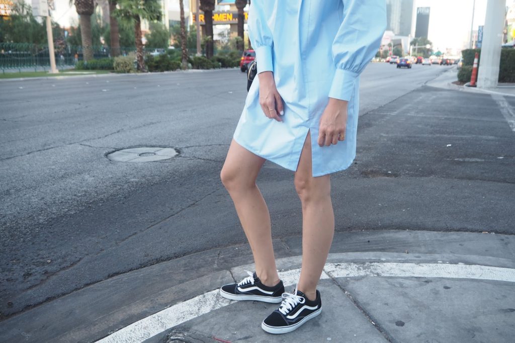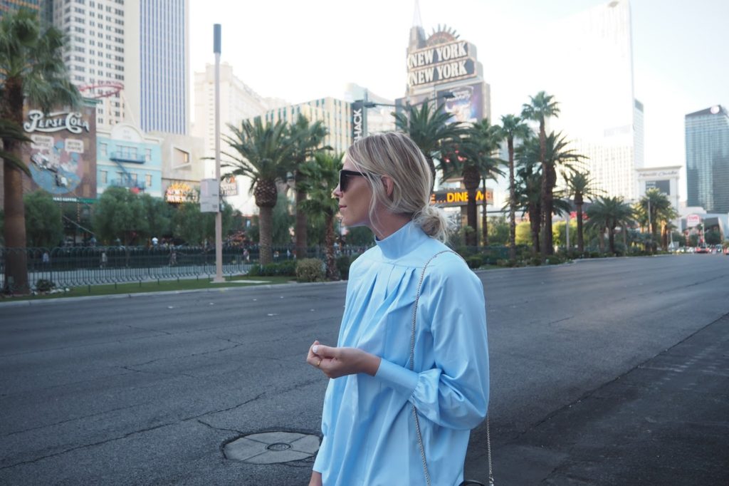 We had so much we wanted to do whilst we were out there so I explored an awful lot, so much so, that my legs are aching as I sit here writing this…that strip is LONG. The wonderful people at Zalando kindly kitted me out so I could show you my day to night time looks in Vegas. If you haven’t shopped on Zalando before, firstly, why? and secondly, it’s brimming with so many incredible brands that you absolutely couldn’t go wrong. Even their own brand collection is pretty great. So as I was choosing my pieces; FYI the selection of Scandi brands they carry is unrivalled, I found this dream shirt dress. I hadn’t really looked at the weather in Vegas, it was a cool 39 degrees pretty much every day so you can imagine how long I lasted in this dress.