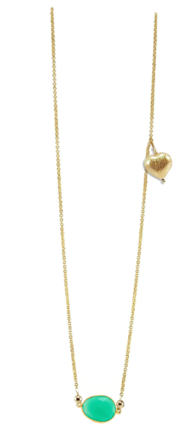 This is my design for the LindseyMarie #DYOJessica necklace and bracelet set. I chose gold and Chrysoprase together with a little gold heart to make my design. I love vibrant colours with gold and my parents bought me a gold and Chrysoprase ring that I wear religiously.