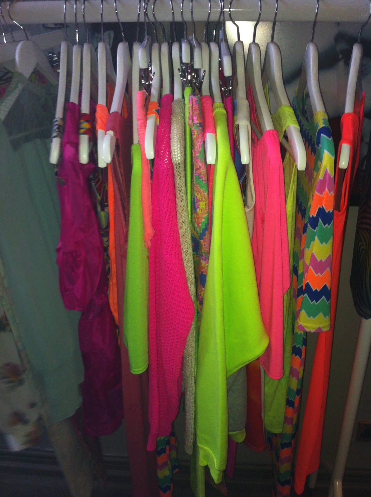 Cool neons, maybe too much all at once, but I know you guys are cool enough to pair it all off with cut off denim shorts and muted whites.