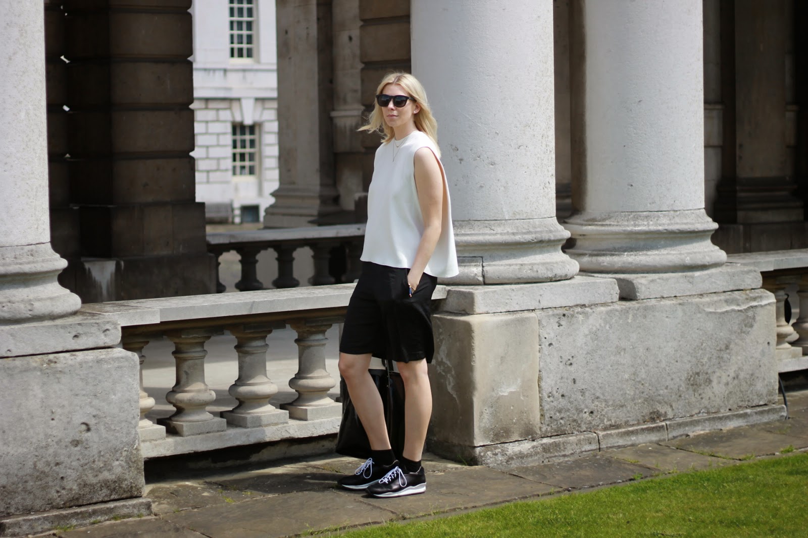 Oh hey Summer! Thank GOD you got the memo that the UK needed you! Here I am taking absolute advantage of a few rays this weekend in Greenwich. What a beautiful place, and I’m so lucky to live ten minutes away. I popped on some silk basketball shorts, new COS tank and my trusty Opening Ceremony kicks for a chilled day out. I am very aware that I am dressed like a boy here….and I’m totally okay with that.