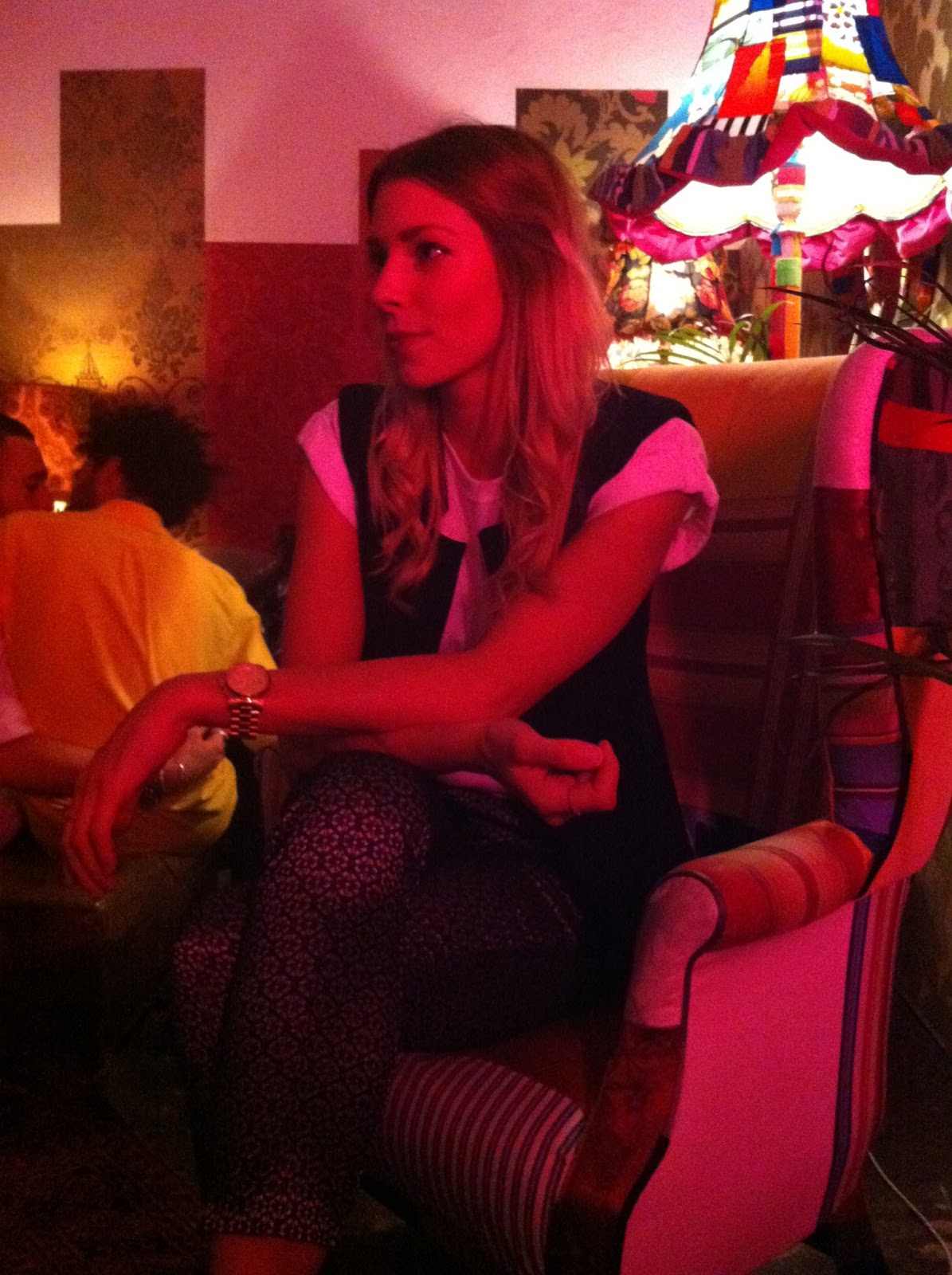 So here you have it, the Made in Shoreditch Magazine second issue launch party. I made the trip from North to South to attend this invite only, wonderfully successful London based mag’s party (it does help that I write for them!)  Situated in the beautiful heart of Shoreditch at a venue called Mordern Jago, a space designed for collaborative work tasks by Microsoft. Graffiti on the walls, plush pink lit rooms and a room with chairs and books stuck to the walls. What more could you want for inspiration? Free world fruit beers and prosecco were flowing, music was loud and the place was packed full of interesting sorts! Oh and the toilets were same sex….the look on the boys faces when walking in to find a que full of girls was priceless, even after the fourth time.