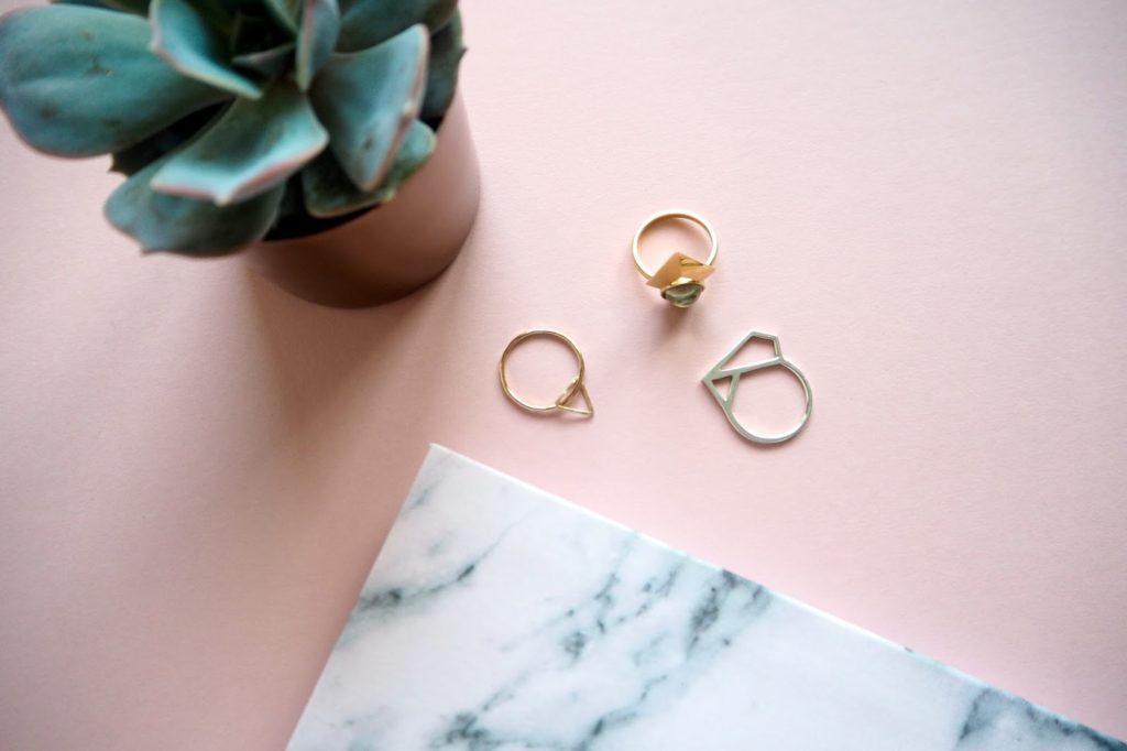 Next up, we’ve got two delicate, minimal rings by Delusions of Grandeur. I chose a silver and a gold one to stack together. The silver is a flat, 3D diamond shape that actually matches a tattoo I have, so it was a no brainer really. The second ring is really delicate and comes in gold. It has a loose triangle that moves freely around the ring and it’s just so perfect as a stacking ring. Shop the silver diamond shaped ring here and the gold triangle ring here.