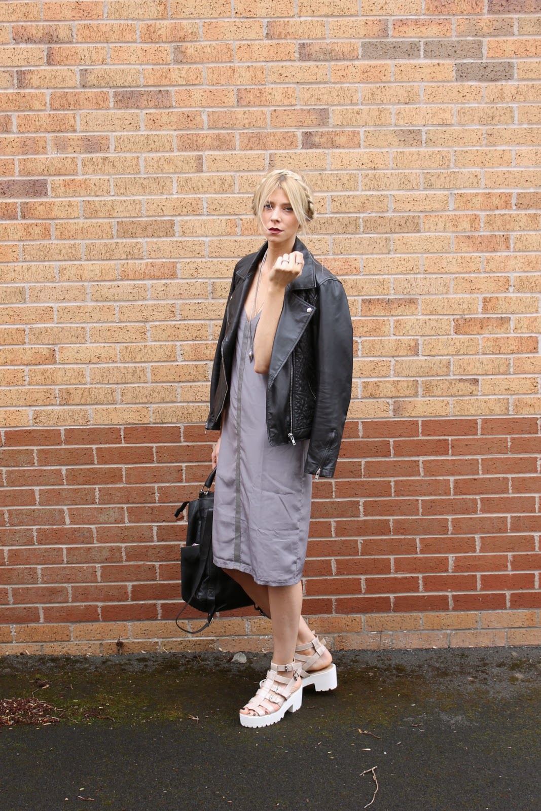 As the weather warms up, my desire to wear dresses grows a little stronger. I’m not talking a girls’ girl dress, I’m talking throw on luxe. Missguided have got the most amazing collection in at the moment, it’s the Peace and Love collection that’s a little more luxe for your money. It’s beautiful and I had the hardest time choosing from it! I finally settled on this grey midi oversized dress with leather detailing. It is beyond perfect for me because it’s so easy to wear super casual. My platform shoes are also Missguided and I’ve wanted to get my hands on these babies FOREVER. I adore them! I was lucky enough to be sent some absolutely stunning jewellery this week, you can see my long drop silver and rose gold pendant from Only Child London in the shot.