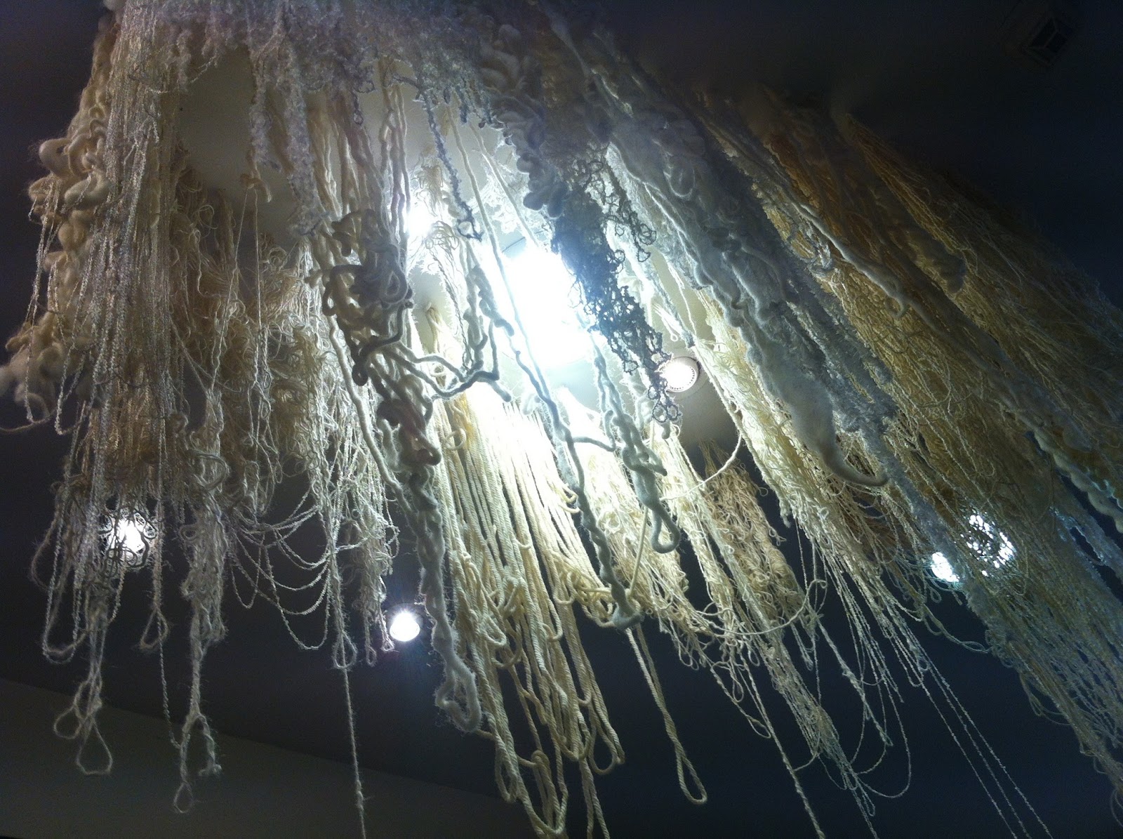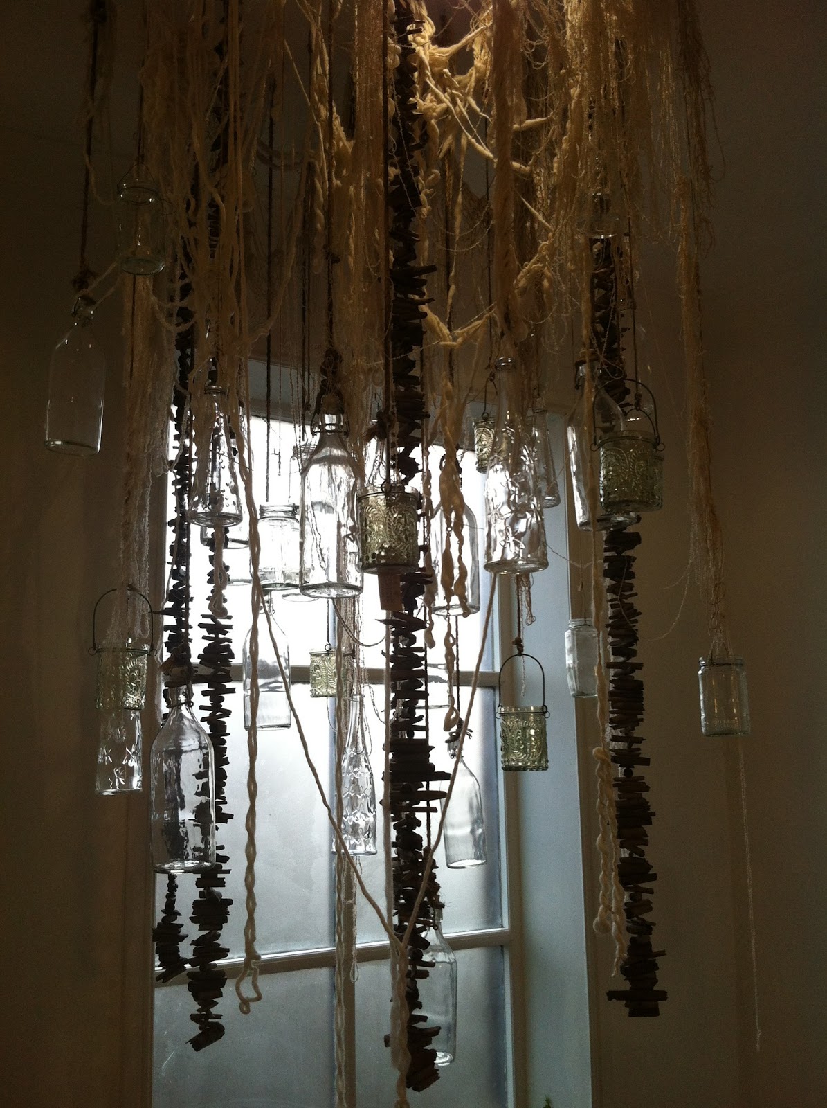 Jan is quite possibly one of the most interesting people I have met in my life so far. She spoke passionately to me about her inspiration for the shop fit, details and the concept for the store. Anthropology heavily influences her design style, and a lot of the accents in store have been handmade. There’s a chandelier (pictured above) up on the landing that is nothing short of exquisite, made from jam jars!