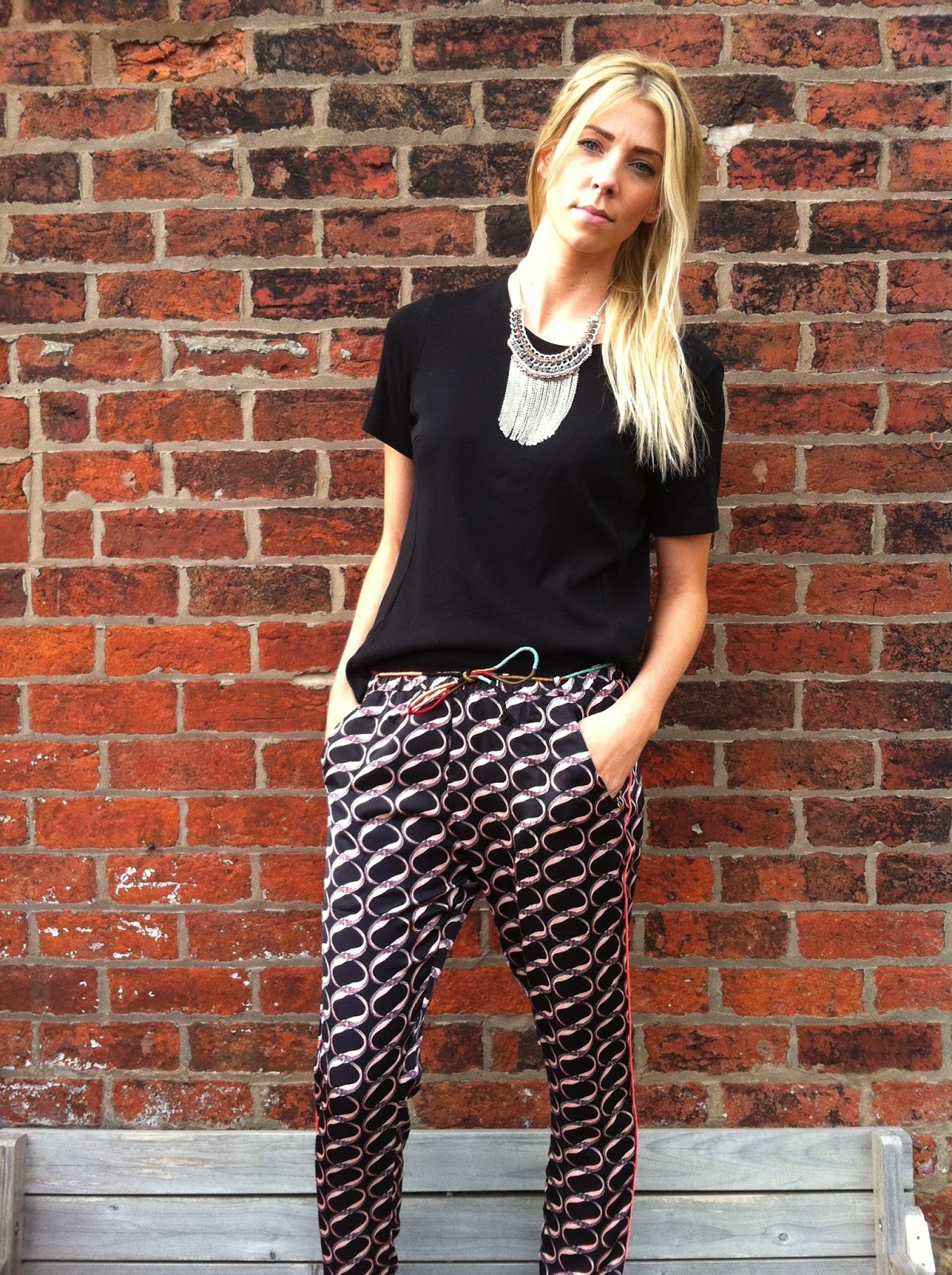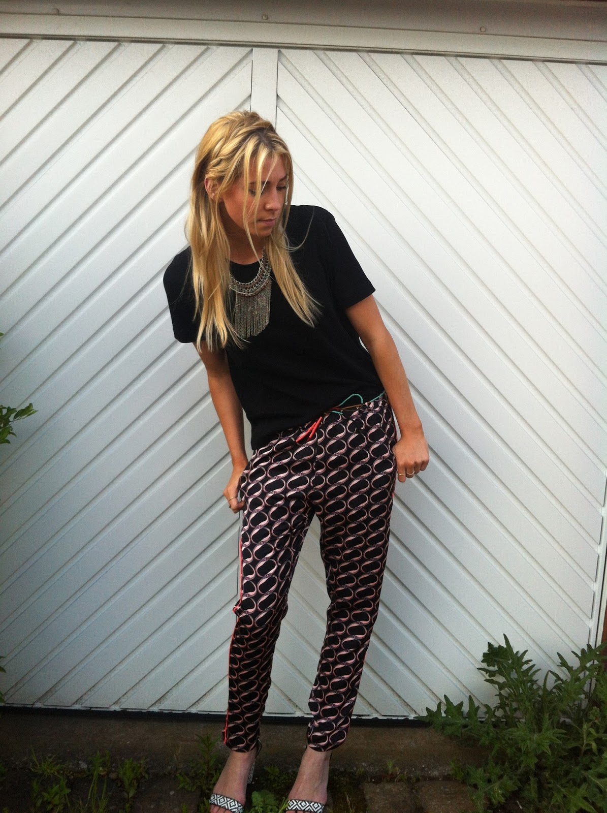 Wow, I really love your pants and sandals, and necklace, everything! Very nice 🙂