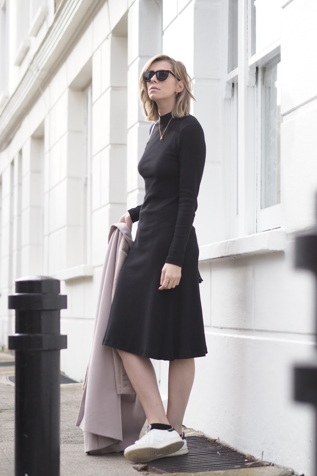 I’m wearing a black simple ribbed jumper dress and trainers for a simple, casual but very warm look. The dress is another piece from the This is Welcome SS16 drop, which will be available in February. In case you can’t wait until then…I’ve popped a similar alternative down for you to shop.