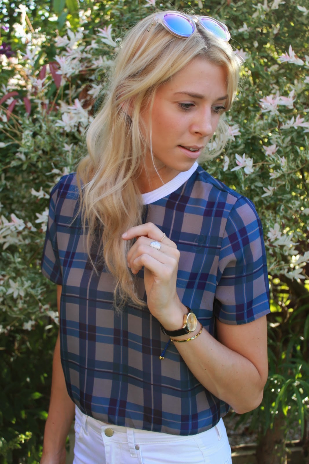 Happy Friday! So here I am in the tightest white jeans you’ve ever seen. I had a job to get in and out of them! White jeans are a piece I have wanted in my wardrobe for a while, but now that they have arrived, I’m too scared to wear them- just during my outfit shots I managed to get them dirty. Nevertheless, I love them and Boohoo are high on my fash list. I popped my Another 8 checked crop on with them for a checked Summer update. You can shop this Another 8 piece online and exclusively at Topshop on Oxford Street.